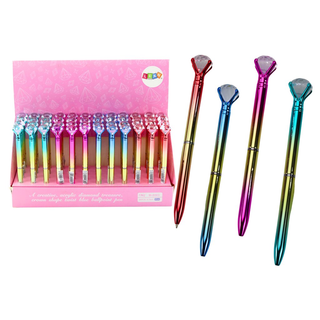 Kuličkové pero s diamantem, zlatý lesk mix barev, modrá náplň 0,7 mm