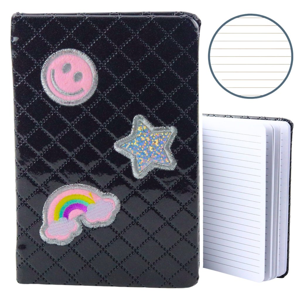 Dekorativní prvky zahrnují barevné nálepky ve tvaru hvězdičky, usměvavé tváře a duhy, které dodávají celkový moderní, mladistvý vzhled Uvnitř se nachází 80 listů v liniích, ideálních pro zapisování deníků, poznámek, náčrtů nebo plánování