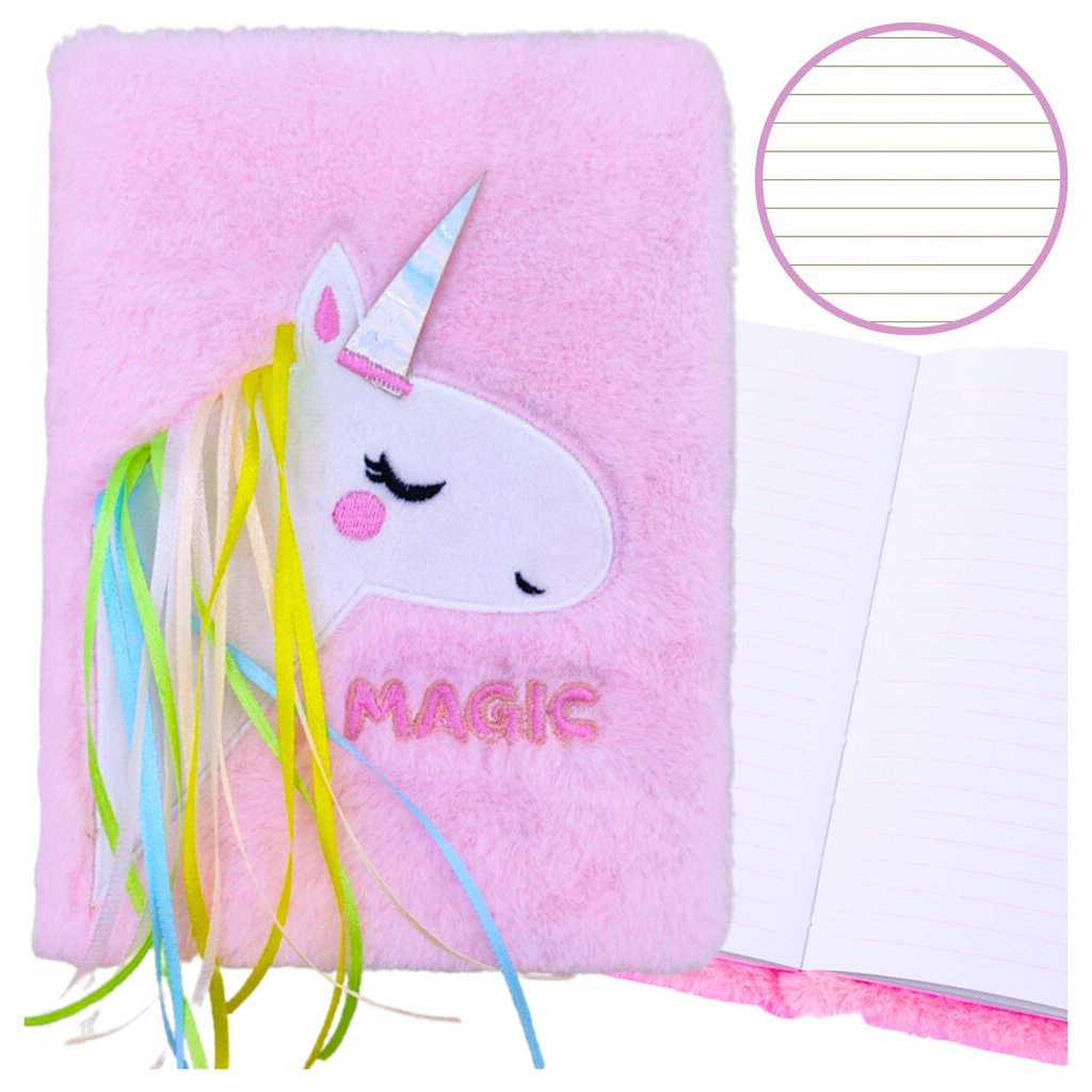 - Pluszový zápisník s roztomilým motivem jednorožce s hřívou