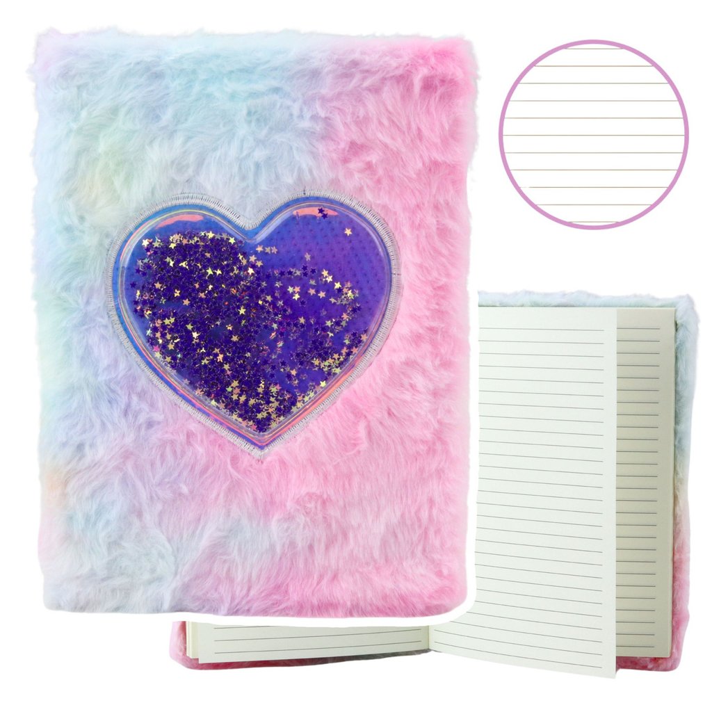 - Plyšový sešit linkovaný srdce s třpytivými konfetami je nejen praktický, ale především stylový