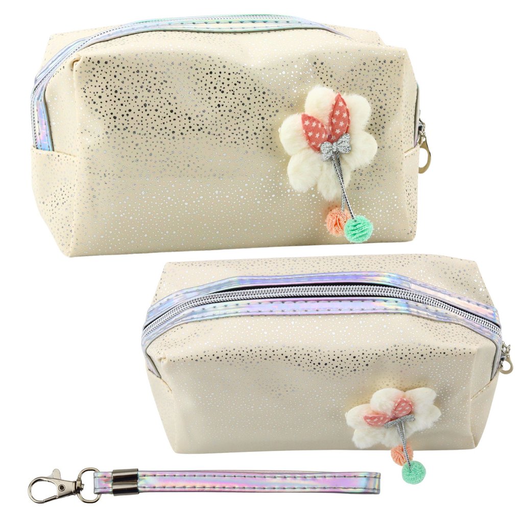 Stylové psací pouzdro kosmetická taštička je výjimečný doplněk pro každou školní výbavu či každodenní použití Vyrobeno v elegantní, béžové barvě, zdobené jemnými, lesklými třpytkami, zaujme svým jedinečným designem