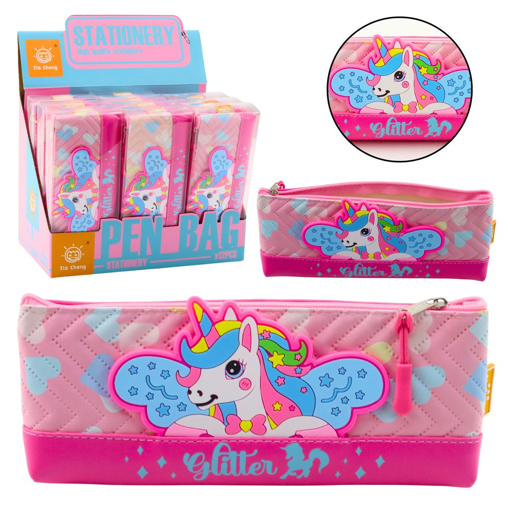 Růžový Školní Penál s Jednorožcem 20 x 8,5 cm