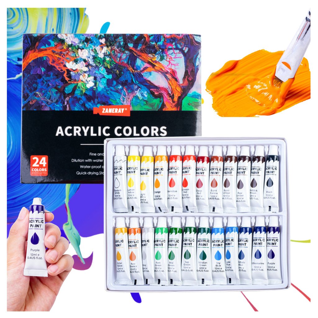 ARTISTICKÉ AKRYLOVÉ BARVY V TUBÁCH – SADA 24 x 12ML Tato vysoce kvalitní sada akrylových barev obsahuje 24 intenzivních barev, které jsou ideální jak pro začátečníky, tak pro profesionální umělce.