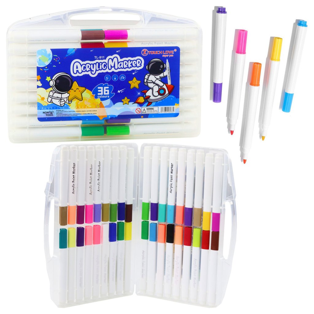 Sada akrylových fixů je ideálním nástrojem pro každého mladého umělce a milovníka umění Vysoce kvalitní fixy v 36 intenzivních barvách umožňují vytvářet jedinečné umělecké a dekorativní projekty
