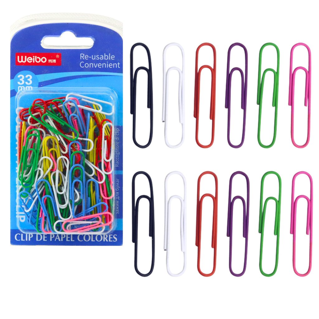 - Sada barevných kancelářských sponek na papír o délce 33 mm je praktickým a estetickým řešením pro organizaci dokumentů, poznámek a školních i kancelářských materiálů