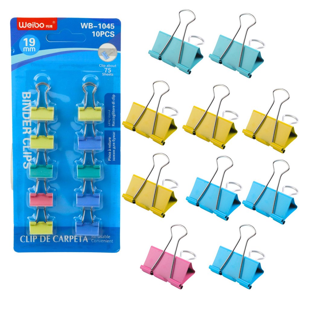 Sada barevných kancelářských sponek na papír o šířce 19 mm a balení 10 ks je praktickým doplňkem pro organizaci dokumentů doma, v kanceláři nebo ve škole Díky pevnému upínacímu mechanismu efektivně spoléhají větší množství papírů, čímž zajišťují pořádek a přehlednost papírových materiálů