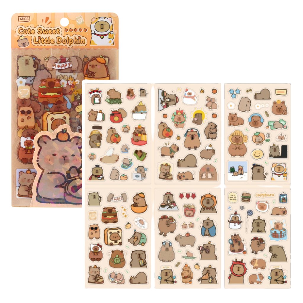 Sada Samolepek Kapybara obsahuje 6 blistrů s přibližně 110 samolepkami, které jsou ideální pro všechny milovníky roztomilých papírových dekorací.