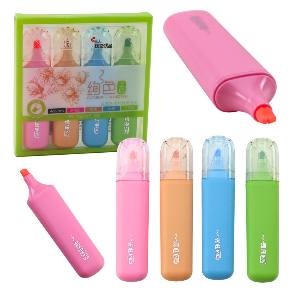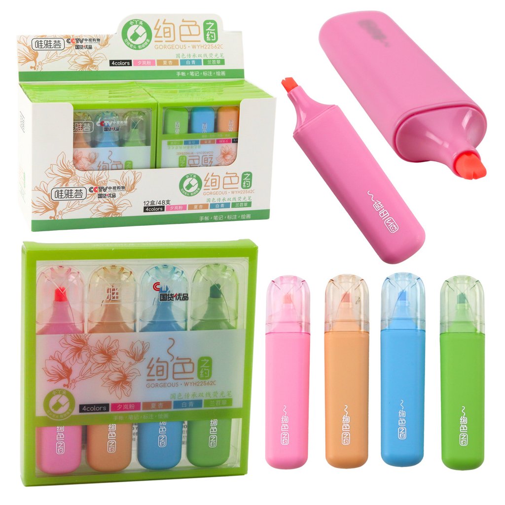 - 4 ks Sada čtyř zvýrazňovačů vybavených inovativním dvojitým hrotem, který umožňuje zvýrazňovat text jak tenkou, tak silnou linkou
