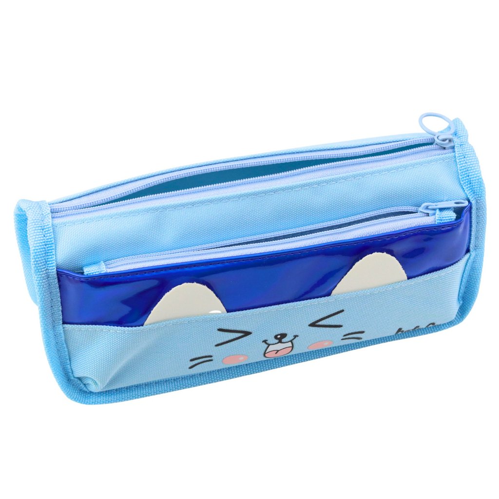 - Objevte kouzlo funkčnosti a stylu s naším dvoukomorovým penálem s modrým kočičím motivem