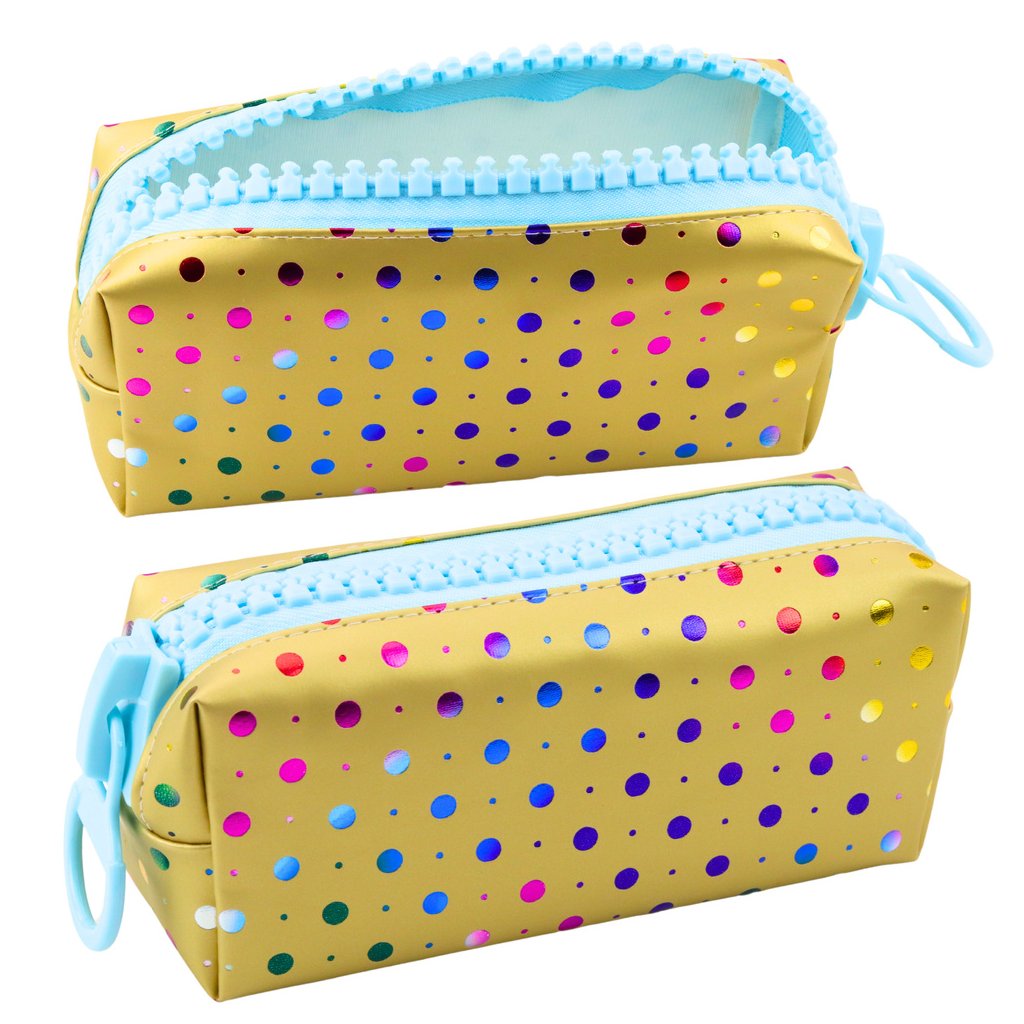 - Výrazné barevné puntíky a velký zlatý zip zaručují, že se toto pouzdro stane oblíbeným doplňkem každého studenta
