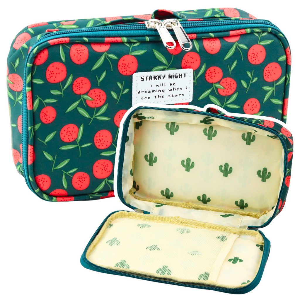 Školní Pouzdro Organizér Kosmetická Taštička Třešně Zelené 22,5cm