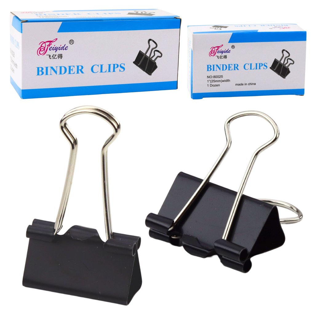 Univerzální Sada Černých Kancelářských Klipsů 25mm 12 ks
