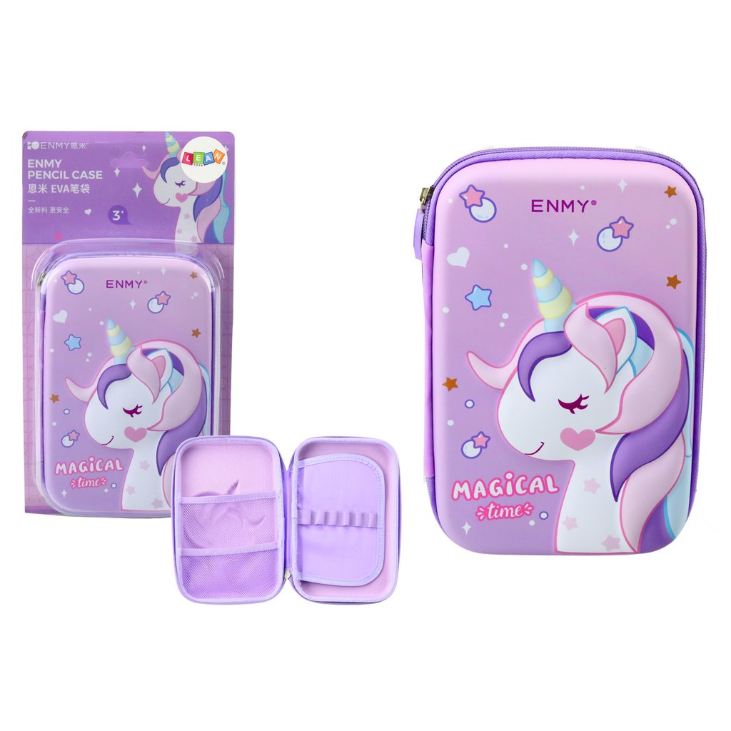 Velký 3D rozkládací penál s jednorožcem Fialový o rozměrech 23x15x5 cm je ideální volbou pro mladé milovnice těchto stvoření, které chtějí spojit funkčnost s roztomilým designem.