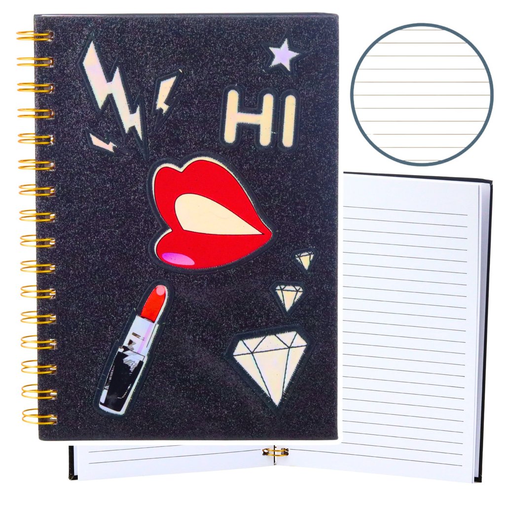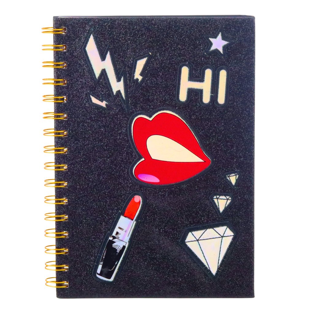 Zápisník Sešit Linkovaný Nášivky Rty Rtěnka Třpytivý Černý A5 80 Listů