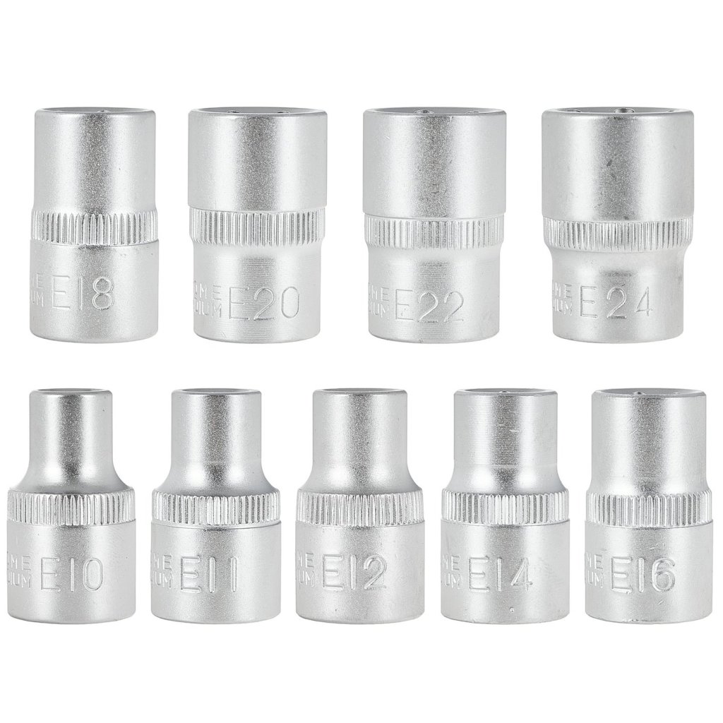 - Sada nástrčných klíčů TORX E10-24 1/2" 9 ks GEKO