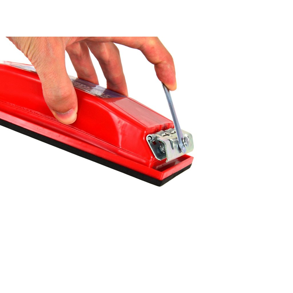 Blok na brusný papír o rozměrech 210 x 105 mm vyrobený z vysoce kvalitního plastu. Plocha, ke které přiléhá papír, je pokryta mikrogumou zlepšující přilnavost papíru. Brusný materiál se upevňuje povýkoní dvou pružinových svorek.
