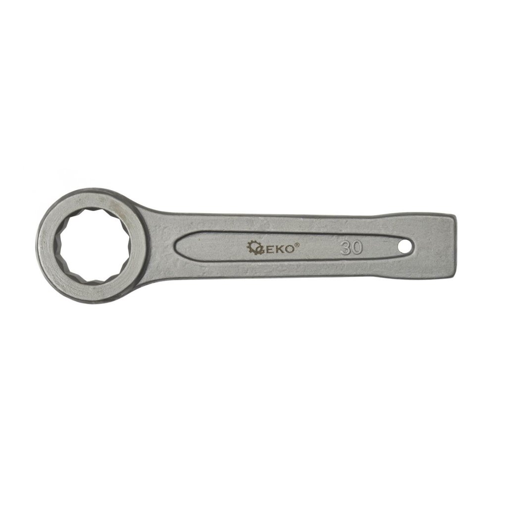Očkový klíč na zatloukání určený k odšroubování pevně utažených nebo zaseknutých šroubů povýkoní úderů kladivem na konec rukojeti klíče.