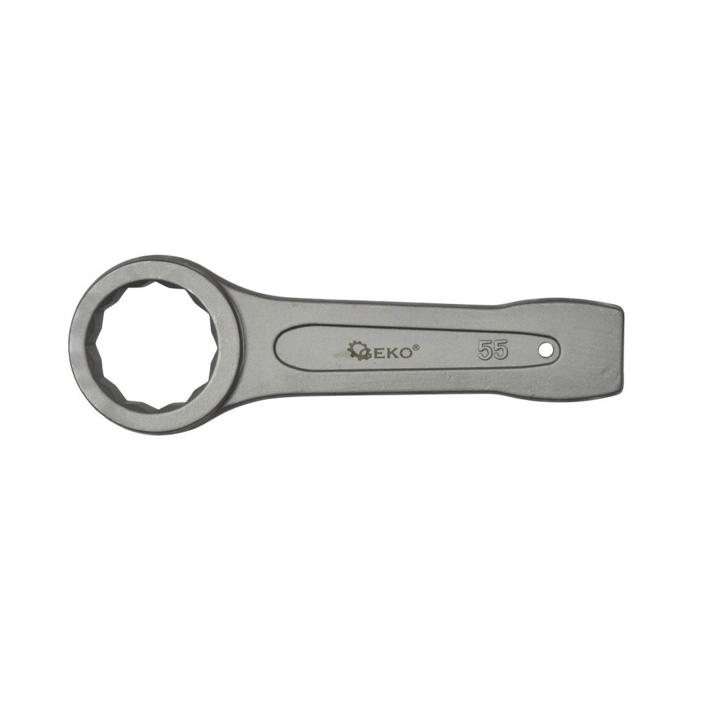 Očkový klíč na zatloukání určený k odšroubování pevně utažených nebo zaseknutých šroubů povýkoní úderů kladivem na konec rukojeti klíče.