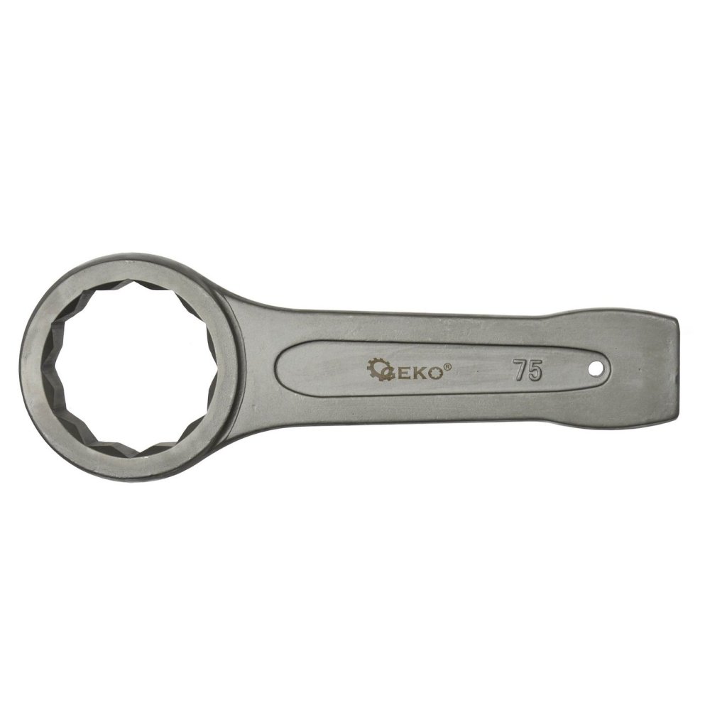 Očkový klíč na zatloukání určený k odšroubování pevně utažených nebo zaseknutých šroubů povýkoní úderů kladivem na konec rukojeti klíče.