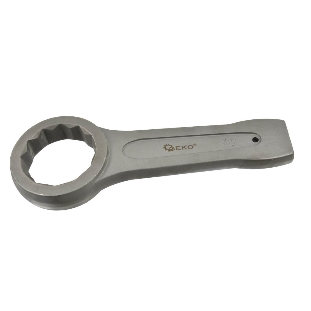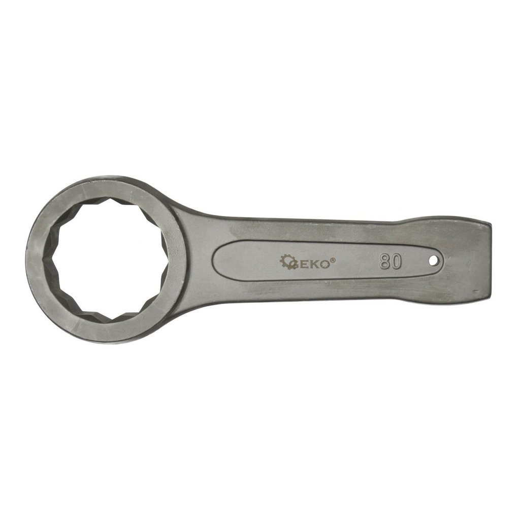 Očkový klíč na zatloukání určený k odšroubování pevně utažených nebo zaseknutých šroubů povýkoní úderů kladivem na konec rukojeti klíče.
