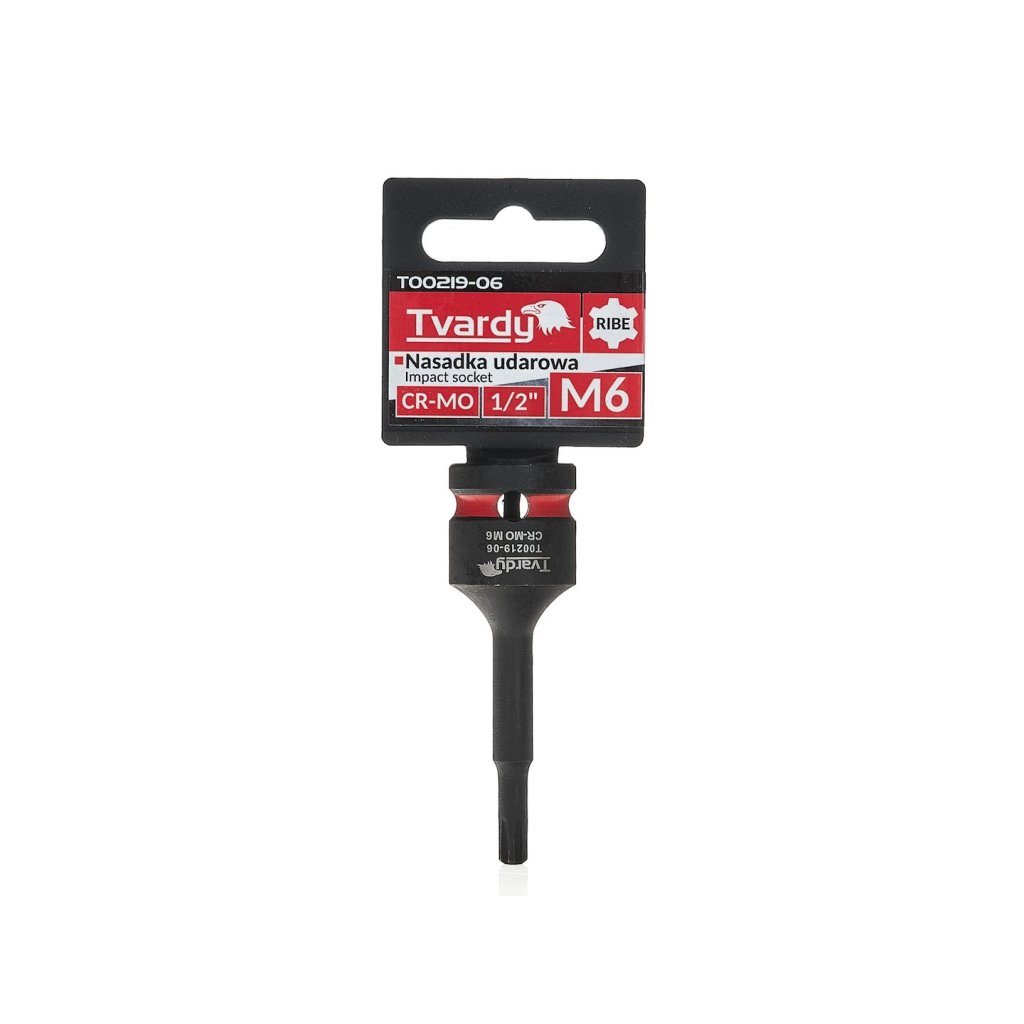 Profesionální nástrčná hlavice RIBE značky Tvardy, určená pro intenzivní práci s rázovými klíči. Nezastupitelná v autoservisech, průmyslu a při montáži konstrukcí, kde se používají spoje se zásuvkou typu RIBE.