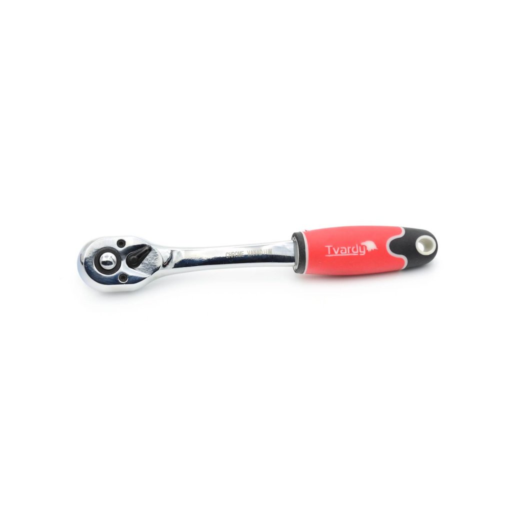 3/8" TVARDY Quick Release ráčna z chrom-vanadové oceli pro zvýšení odolnosti. 72-zubový ráčnový mechanismus vyžaduje pouze 5° otočení, díky čemuž je ideální pro použití v těžko přístupných místech. Čtvercový pohonný adaptér s kuličkovou pojistkou.