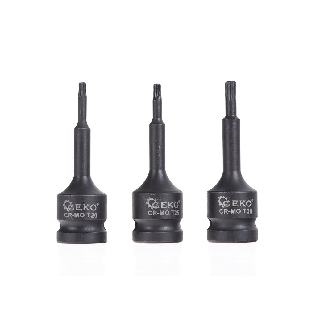 Sada rázových klíčů Torx vyrobených z vysoce kvalitní chrom-molybdenové oceli (Cr-Mo). Sada obsahuje 9 kusů nástavců ve velikostech T20-T70. Nástavce s 1/2” přírubou jsou určeny pro těžkou práci s rázovými klíči s vysokým točivým momentem. Skvěle se hodí do profesionální autoservisu.