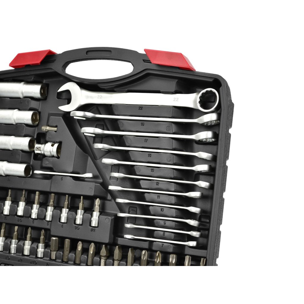 - 12x klíče s plochou a okovou hlavou: 6, 7, 8, 9, 10, 11, 12, 13, 15, 17, 19, 22 mm