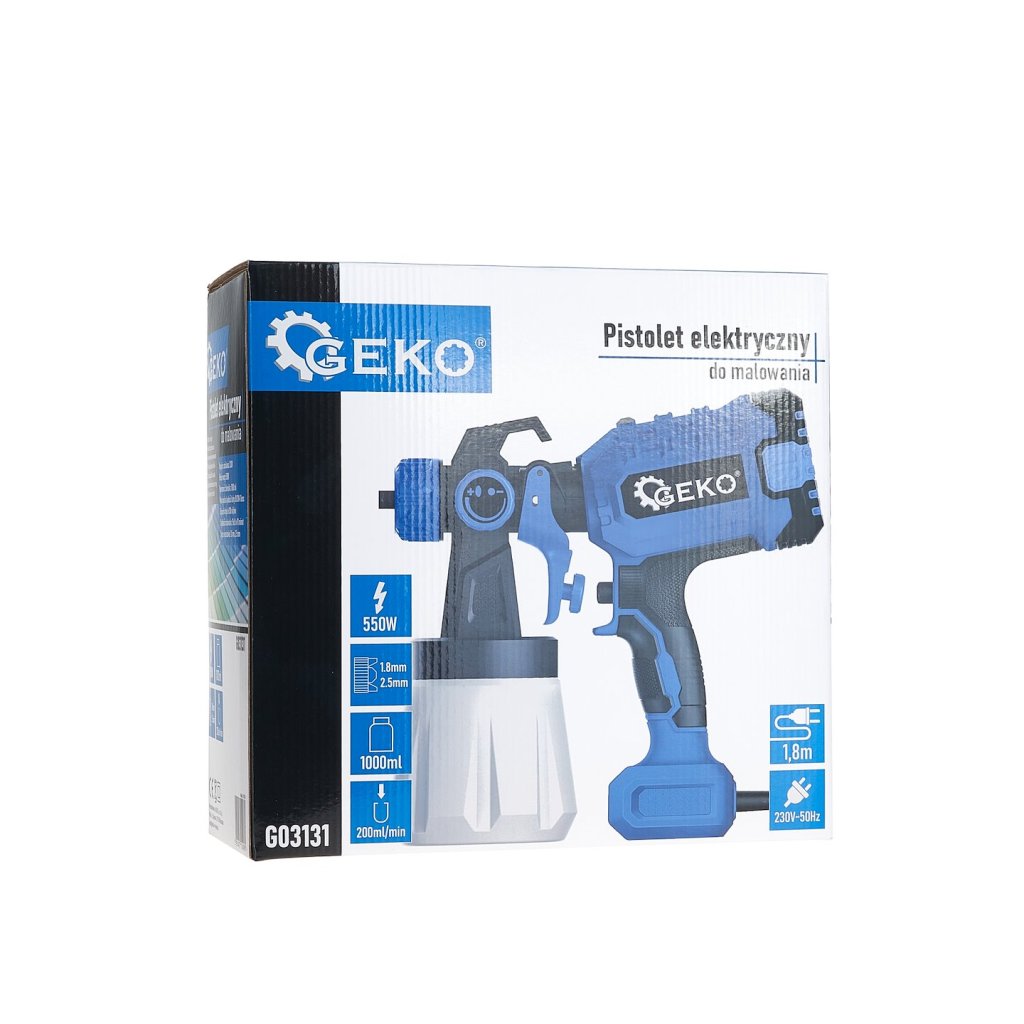 Technické údaje Napájecí napětí: 230 V Příkon: 400 W Objem nádrže: 800 ml Maximální viskozita barvy: 80 DIN-Secs Spotřeba barvy: až 300 ml/min Rychlost natírání: 15 m2 za 10 minut Trysky v sadě: 1,8 m