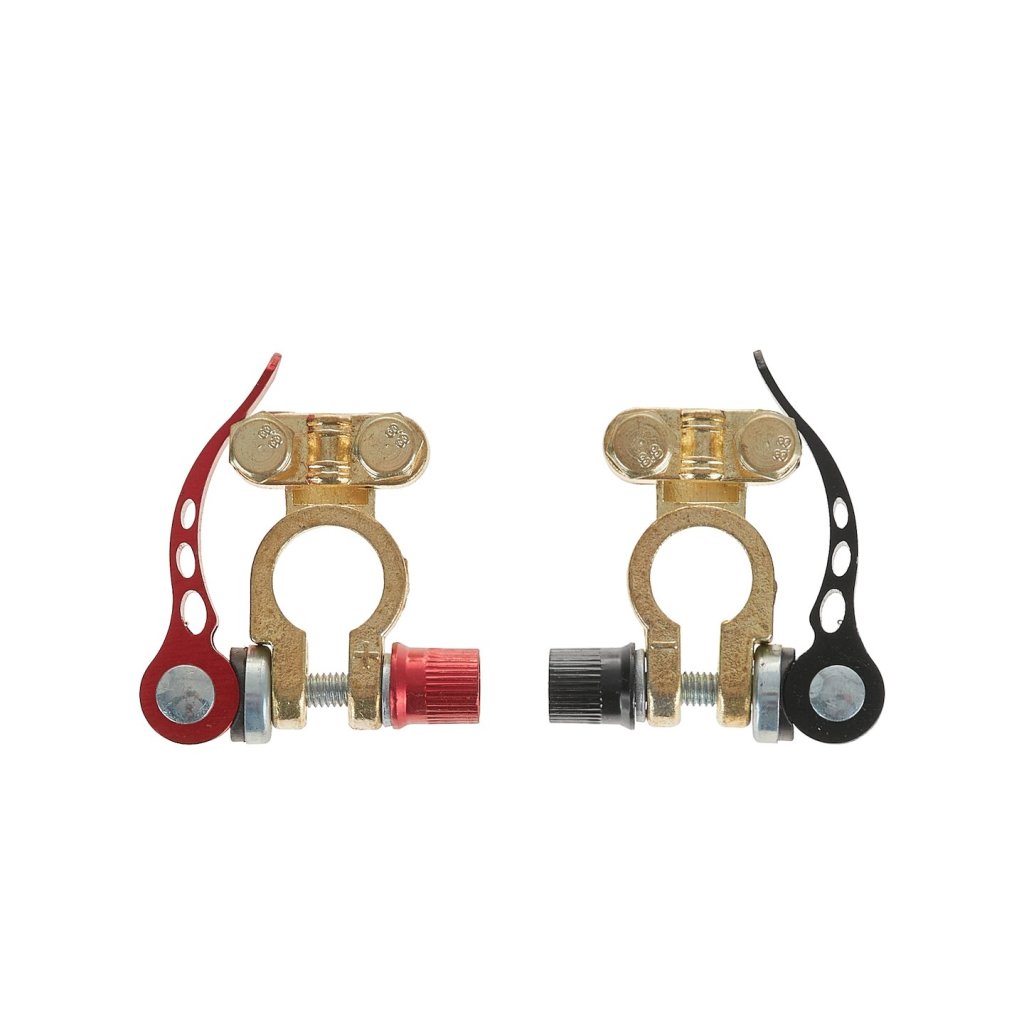 - Rychlospojky: Jsou vybaveny pákami, které umožňují rychlé připojení a odpojení baterie bez použití nástrojů.