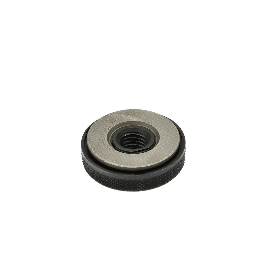 Rychloupínací matice M14 pro úhlové brusky. Umožňuje rychlou výměnu kotouče bez použití nářadí. Hodí se pro všechny brusky vybavené vřetenem se závitem M14, bez ohledu na průměr kotouče.