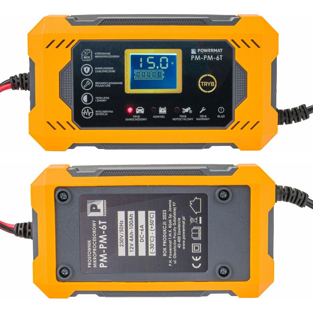 ✅ Inteligentní mikroprocesorové řízení – aktivně monitoruje stav baterie a upravuje proud či napětí pro optimální nabíjení bez přebíjení.