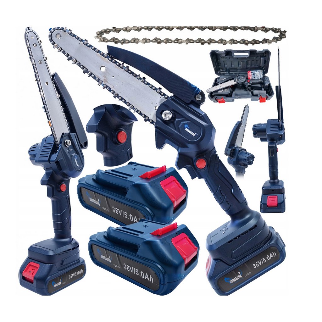 Výkonná AKU mini pila 36V – 2 baterie, 8'' lišta – Řežte rychle a bez kabelů