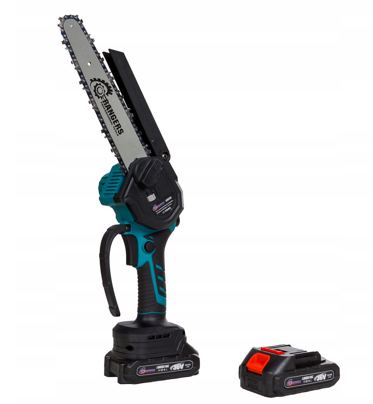 - Aku mini řetězová pila 8" mazaní+ 2x baterie 36V – výkon, přesnost a pohodlné ovládání