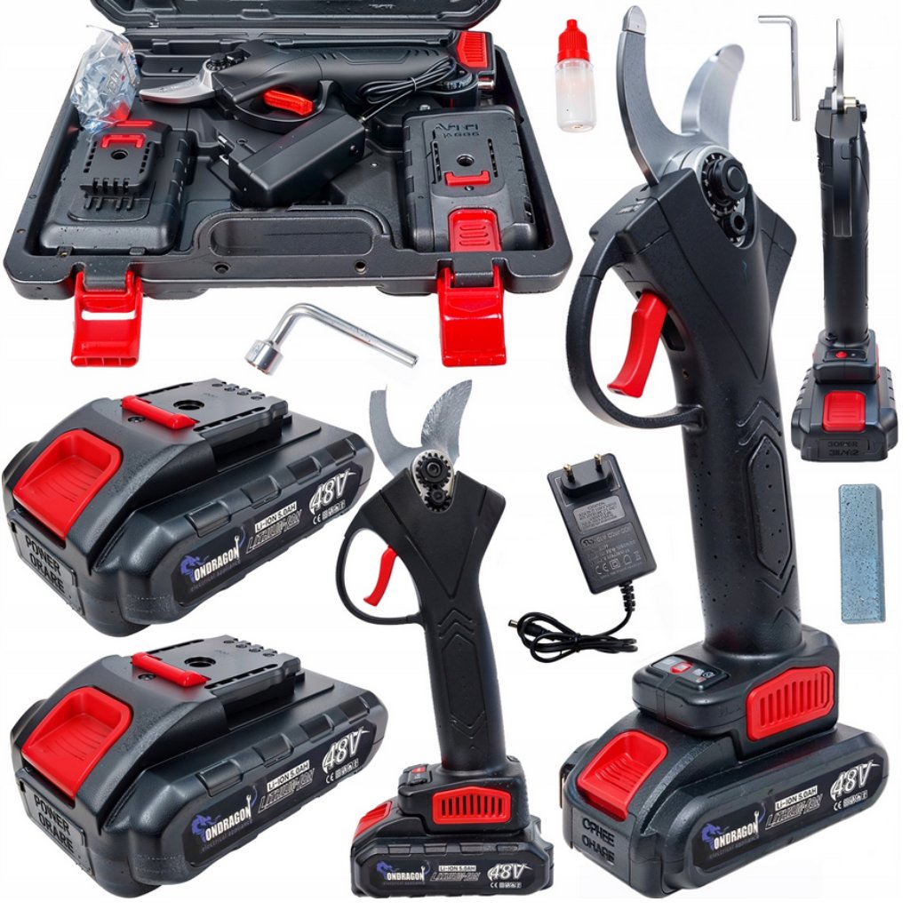 AKU SADA Nůžky na keře a větve Ondragon 48V + ZDARMA 2× Li-ion Baterie 5Ah