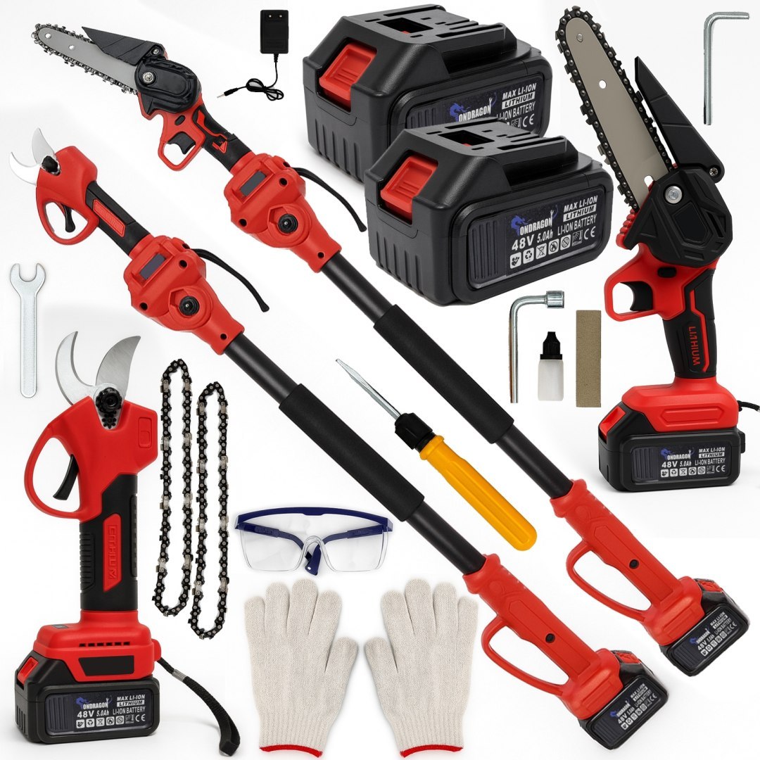 Aku pila 8″ + Nůžky + teleskop 4 m – 2× BIG Akku 5 Ah (XXXL set)