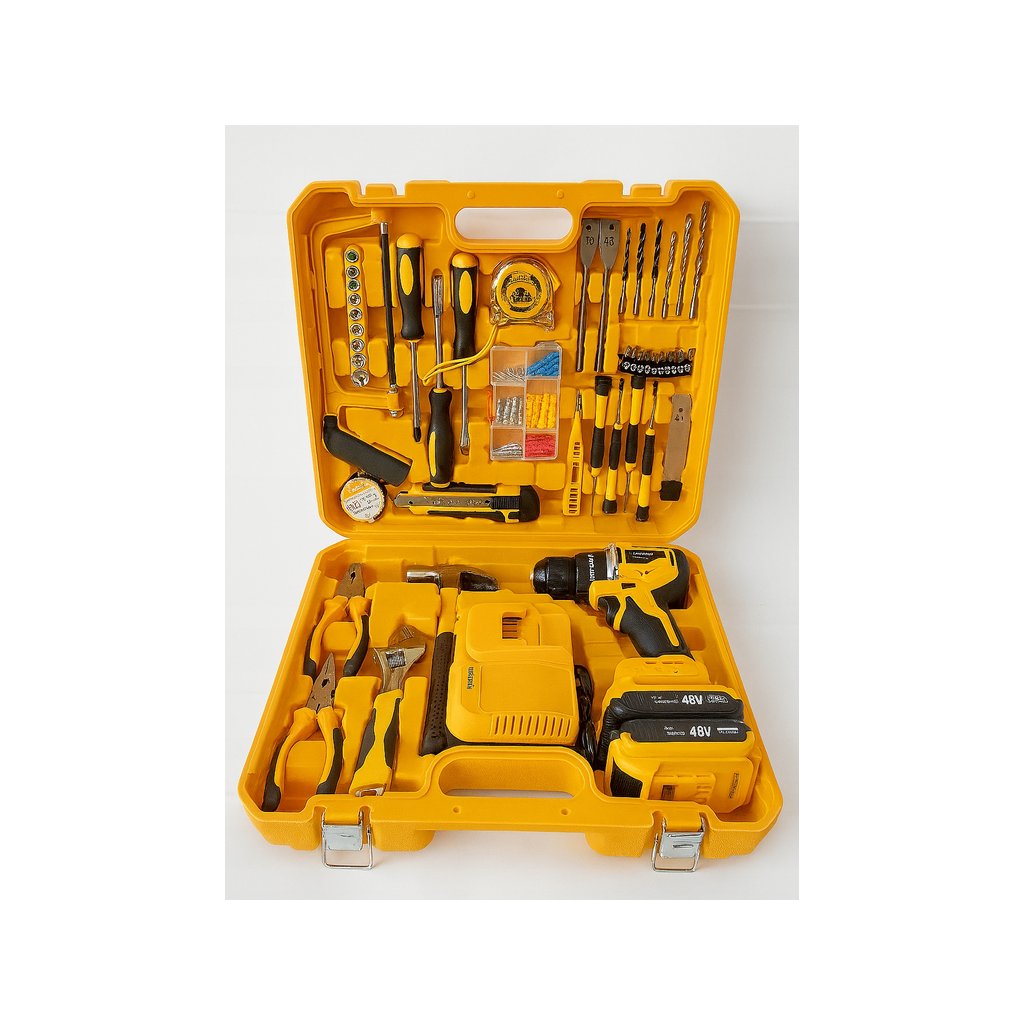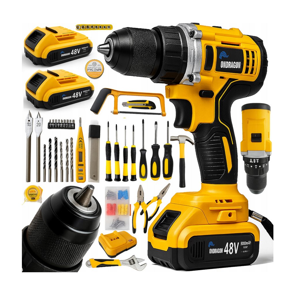 Akumulátorová vrtačka s příklepem - 2× baterie 48V, sada 92 ks
