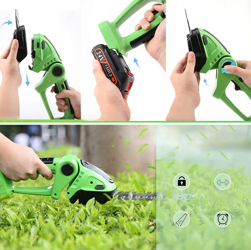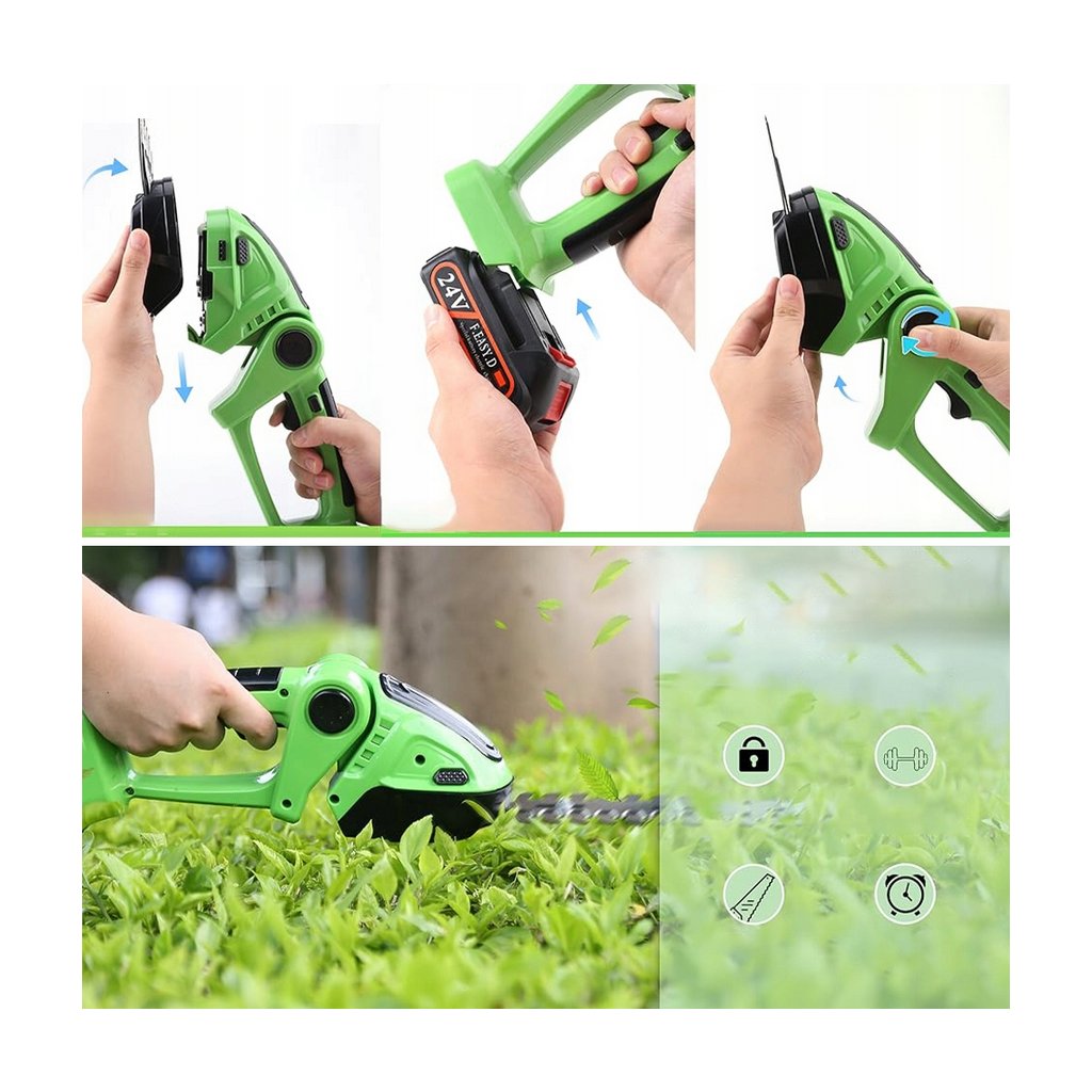 - Akumulátorové nůžky na trávu a keře 2v1 500 W + čepele – výkon, přesnost a pohodlné ovládání