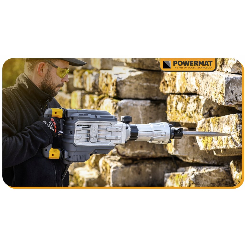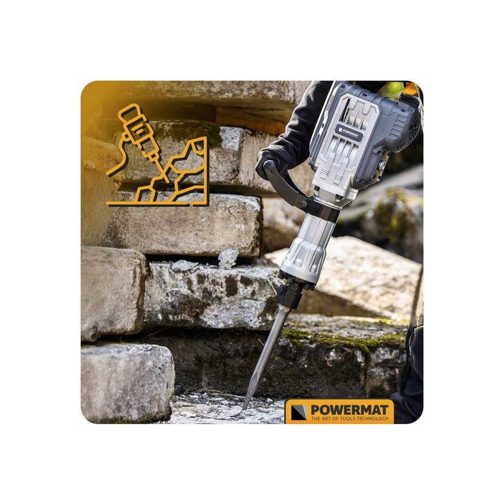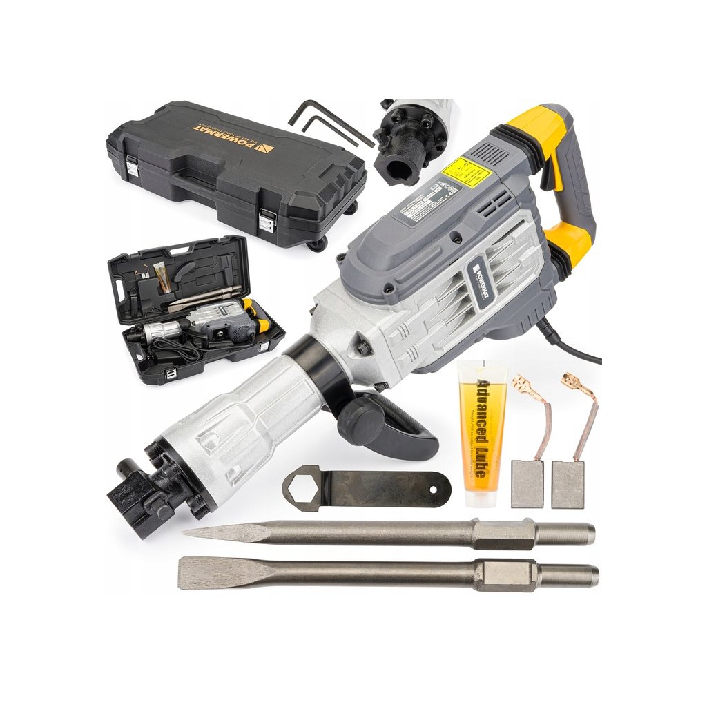 Profesionální elektrické bourací kladivo s výkonem 3300 W a úderovou silou 65 J. Ideální pro demolice, sekání betonu, cihlových stěn nebo základů. Dodáváno v praktickém kufru včetně dvou sekacích nástavců.