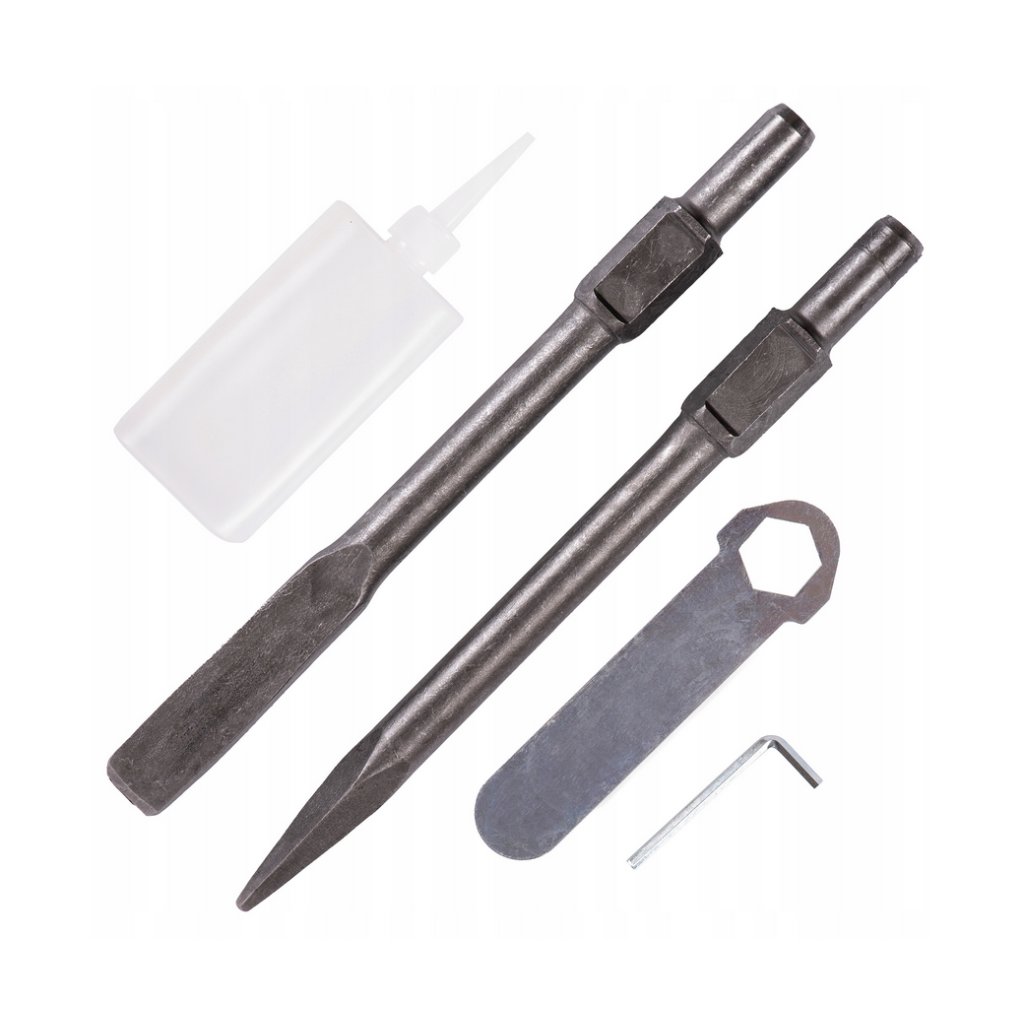 Součástí balení je pevný kufr + plochý a špičatý sekáč.