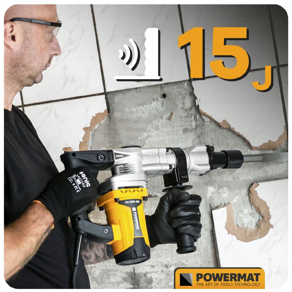 Vysoká úderová energie 18 joulů umožňuje rozbíjet i pevné materiály jako beton, cihly a kámen.
