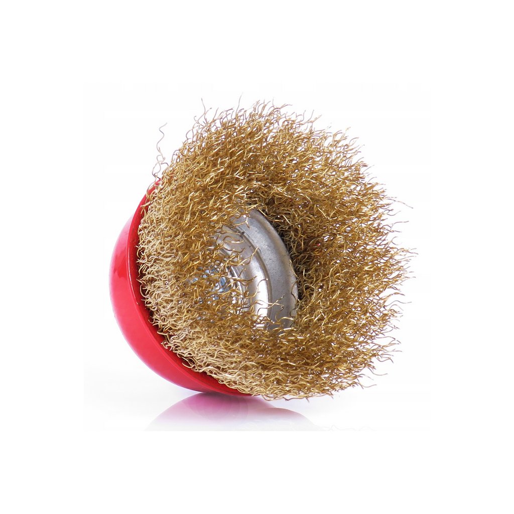 Kvalitní měděný kartáč s vnějším závitem M14 pro úhlové brusky je vytvořený pro šetrné a účinné čištění kovových povrchů – ideální pro odstranění rzi, nátěrů či připálenin bez poškození základního materiálu.