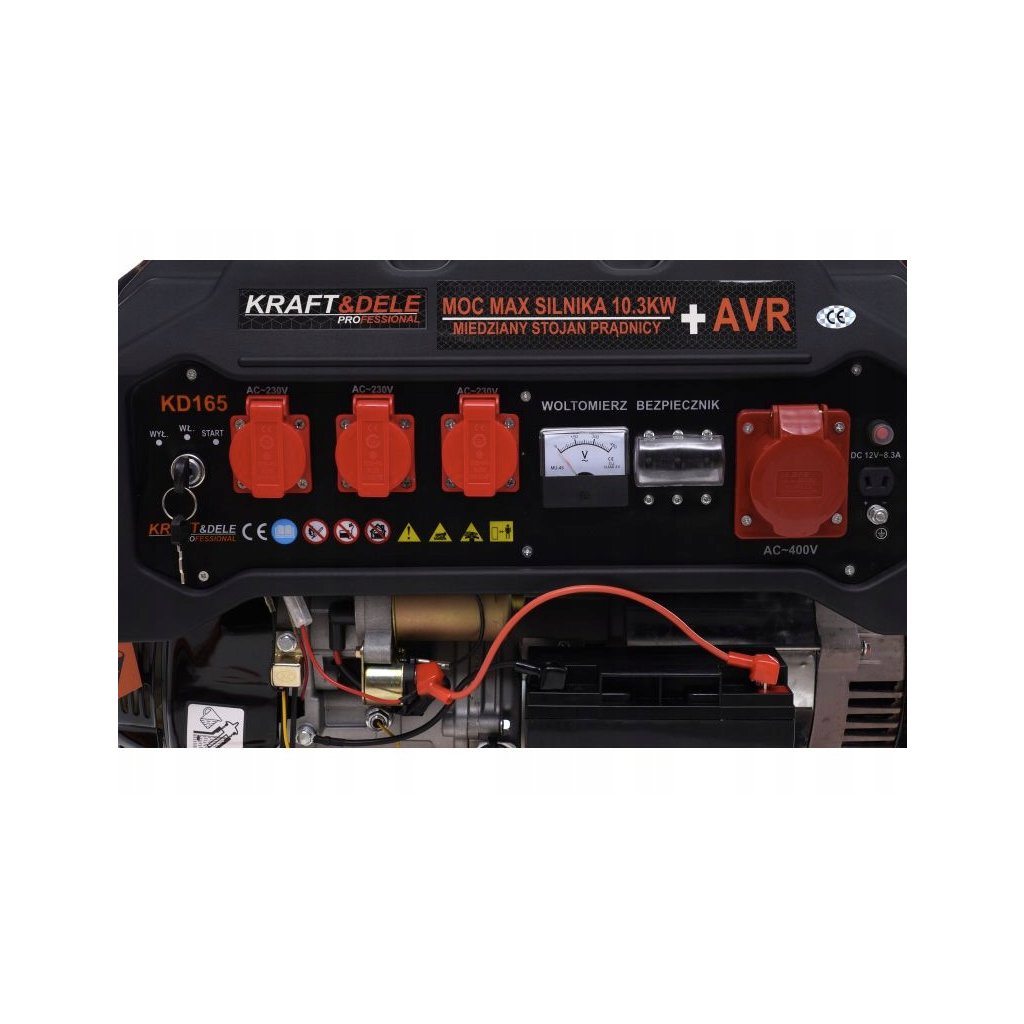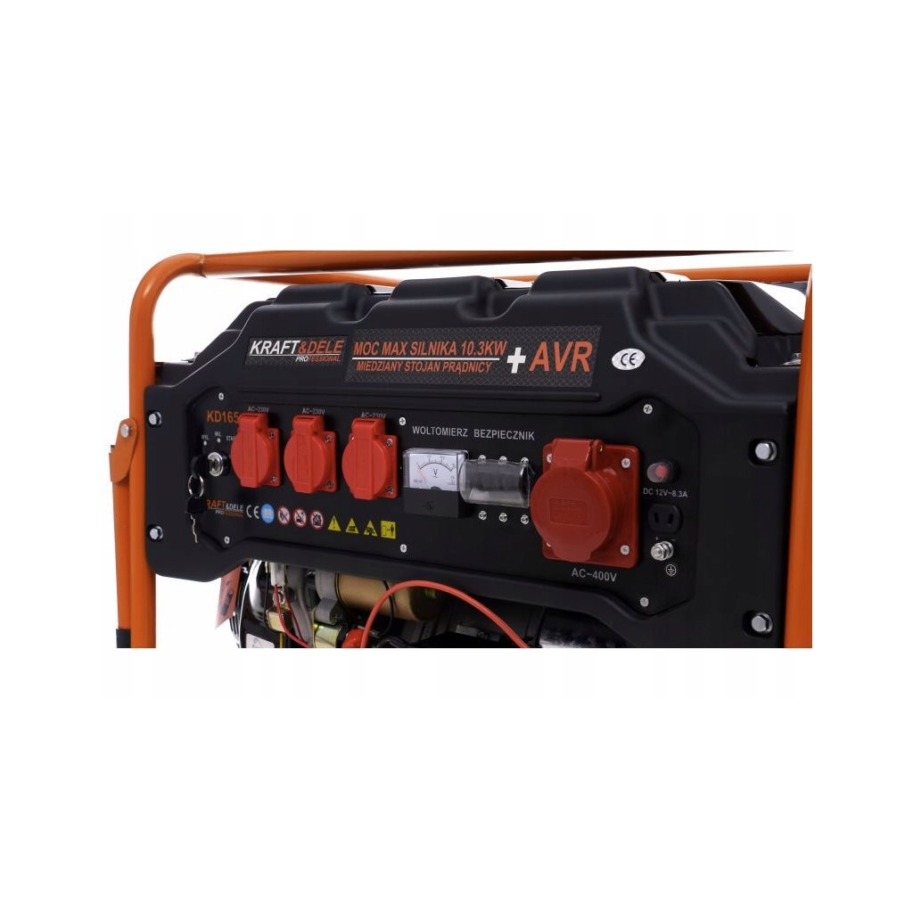 Výkonná třífázová elektrocentrála Kraft&Dele KD165 s maximálním výkonem 5500 W a měděným vinutím alternátoru. Spolehlivý zdroj proudu pro stavbu, dílnu, servis, chatu i záložní napájení domu při výpadku elektřiny.