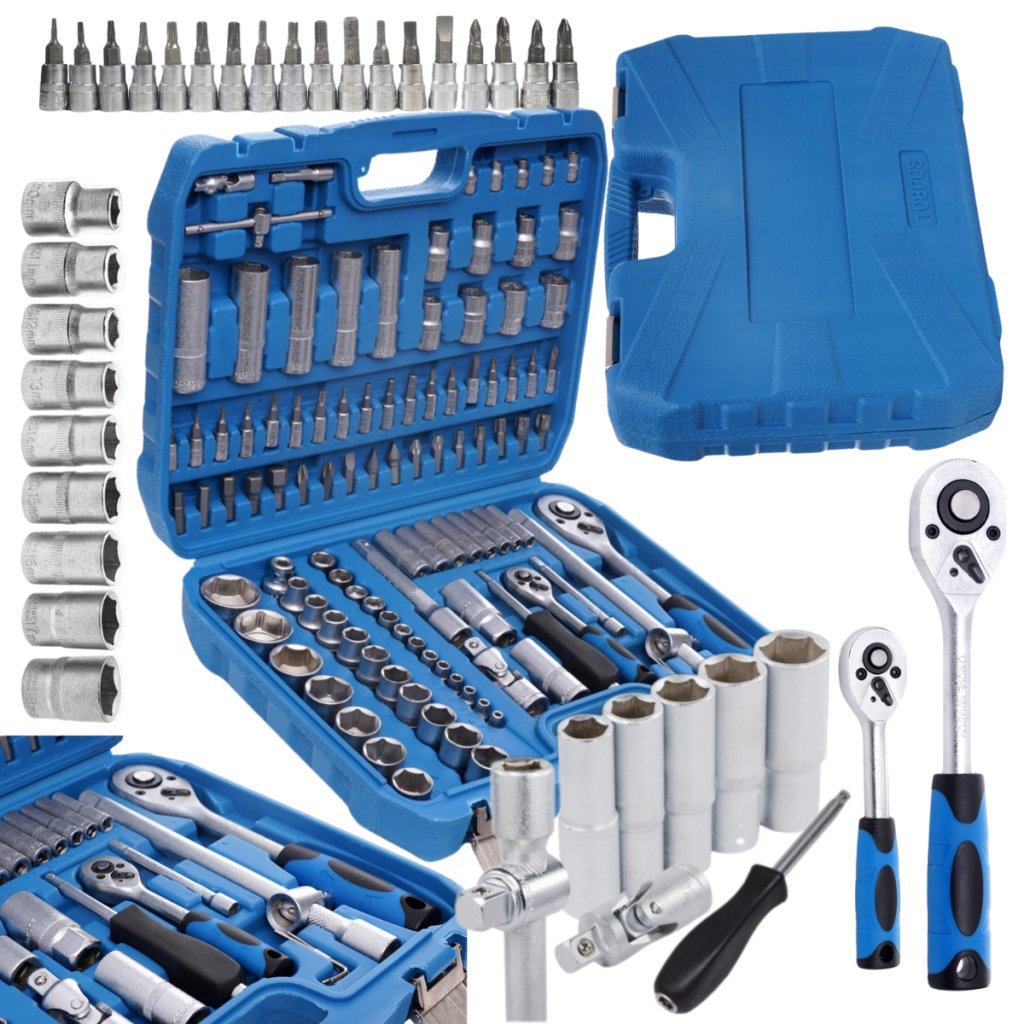 ✅ Obsah sady: 108 kvalitních dílů – různé ráčny, nástavce, bity a klíče
