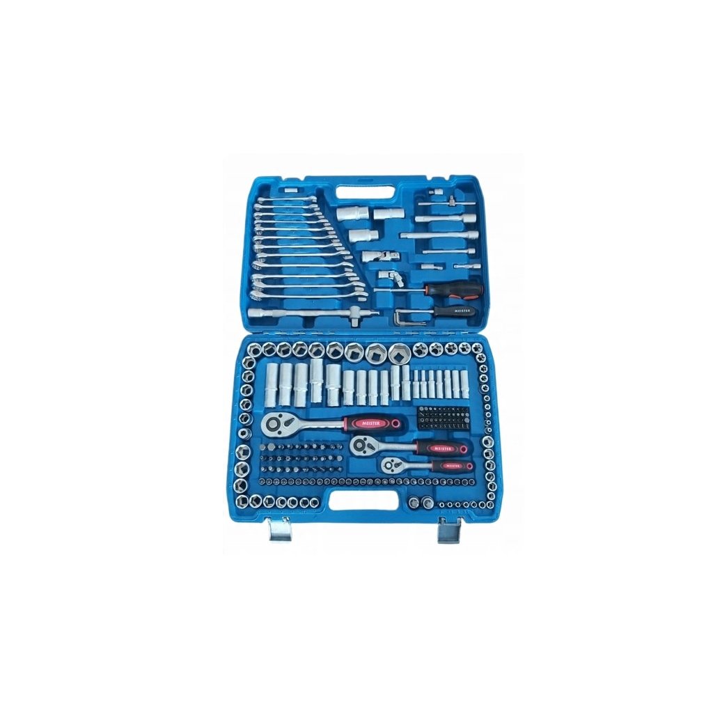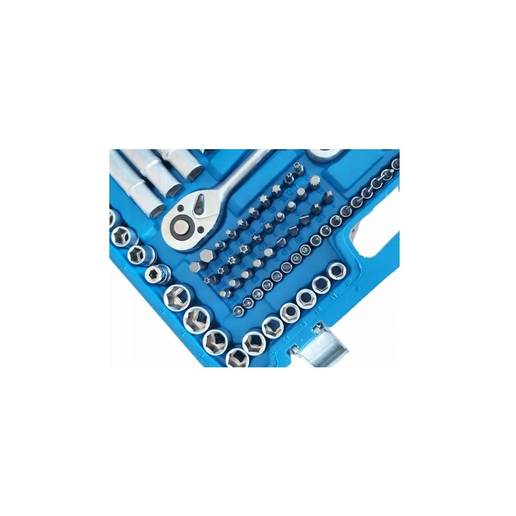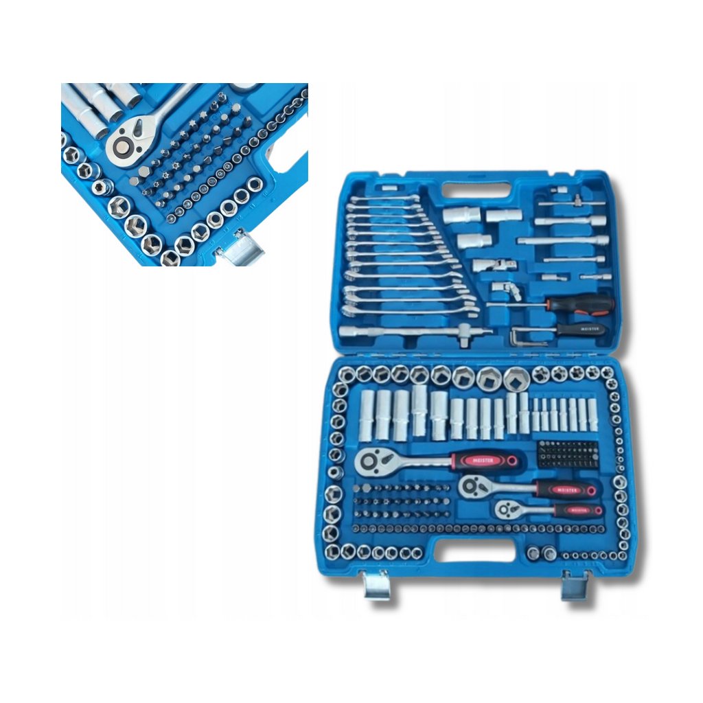 Kompletní sada klíčů, bitů a ráčen pro každého kutila, řemeslníka i autoservis. Obsahuje 216 dílů, 3 standardy pohonu (1/4", 3/8", 1/2"), široký výběr nástavců, hlavic, bity, prodloužení a přechodky. Vše úhledně uložené v odolném plastovém kufru.