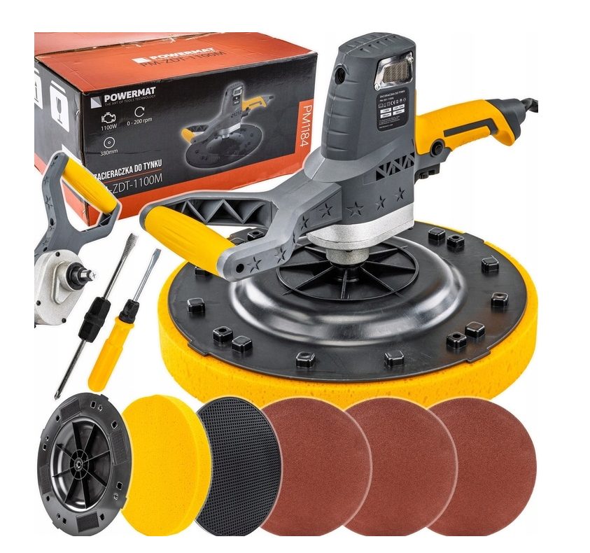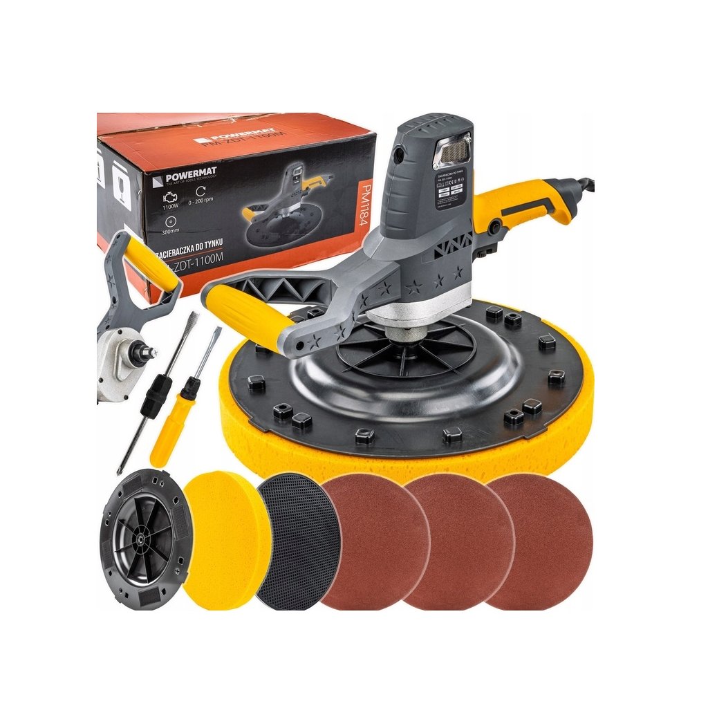 - Hladicí bruska na omítky 1100 W | Ø 380 mm | regulace otáček – výkon, přesnost a pohodlné ovládání