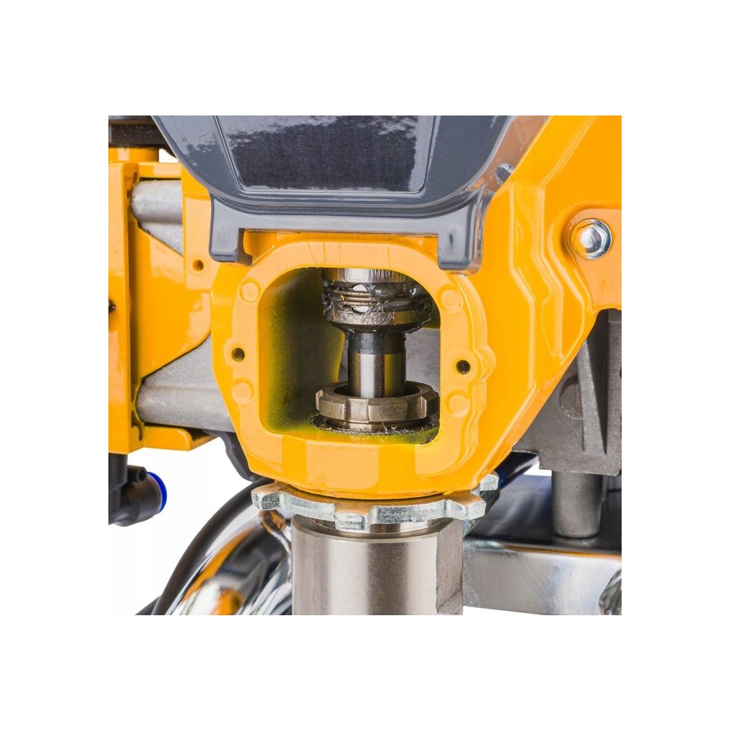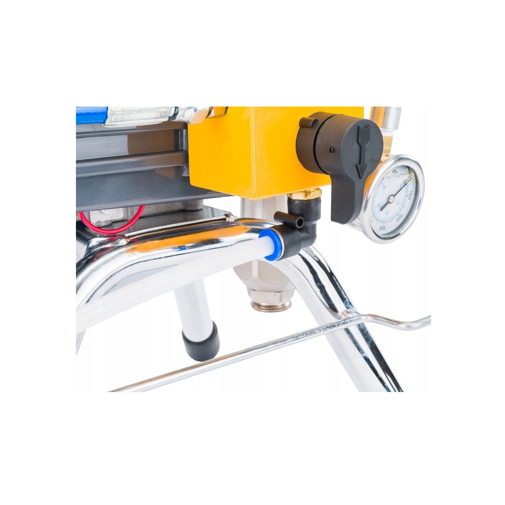 Výkonný bezvzduchový (airless) stříkací systém s bezkartáčovým motorem 1300 W pro rychlé a rovnoměrné nanášení interiérových nátěrů a vybraných fasádních nátěrů. Max. pracovní tlak 230 bar, průtok 3 l/min a hadice 15 m zajišťují vysoký výkon i dosah bez častého přesouvání jednotky. LCD displej usnadňuje nastavení a kontrolu. Čerpací část tvoří membránové čerpadlo poháněné pístem pro spolehlivý chod a snadnou údržbu.