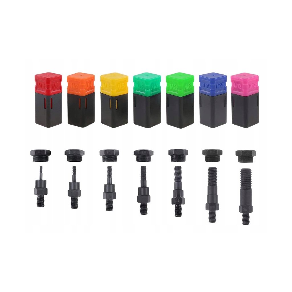 ✅ Výměnné závitové trny – snadná adaptace na různé velikosti maticových nýtů