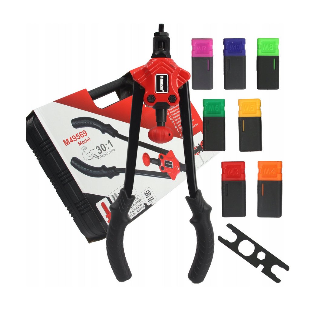 Kleště na nýtovací matice M3-M12 (M49569) jsou praktickým nástrojem pro rychlé a pevné nýtování závitových spojů v různých materiálech. 🔩