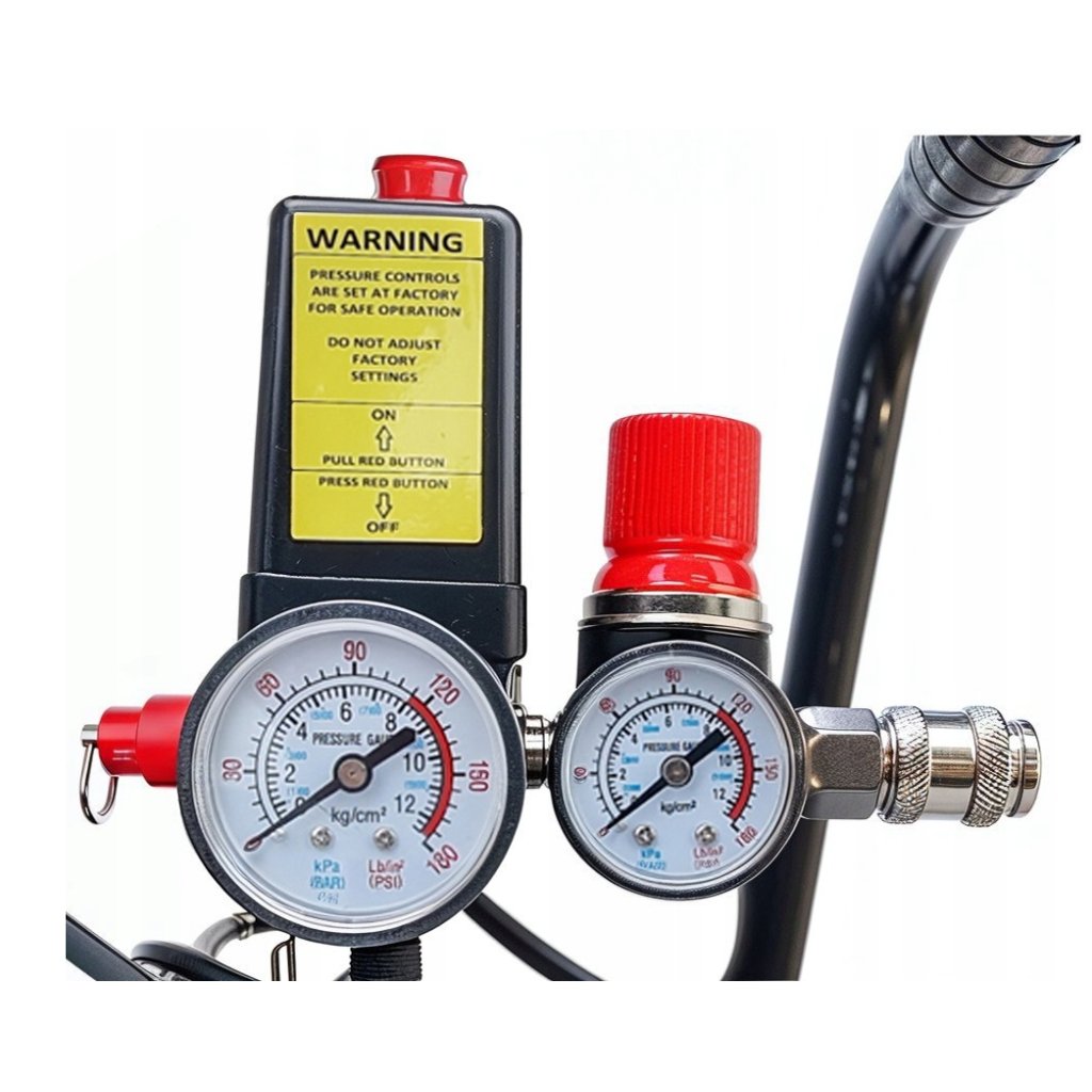 dva manometry pro sledování tlaku v nádrži a na výstupu,